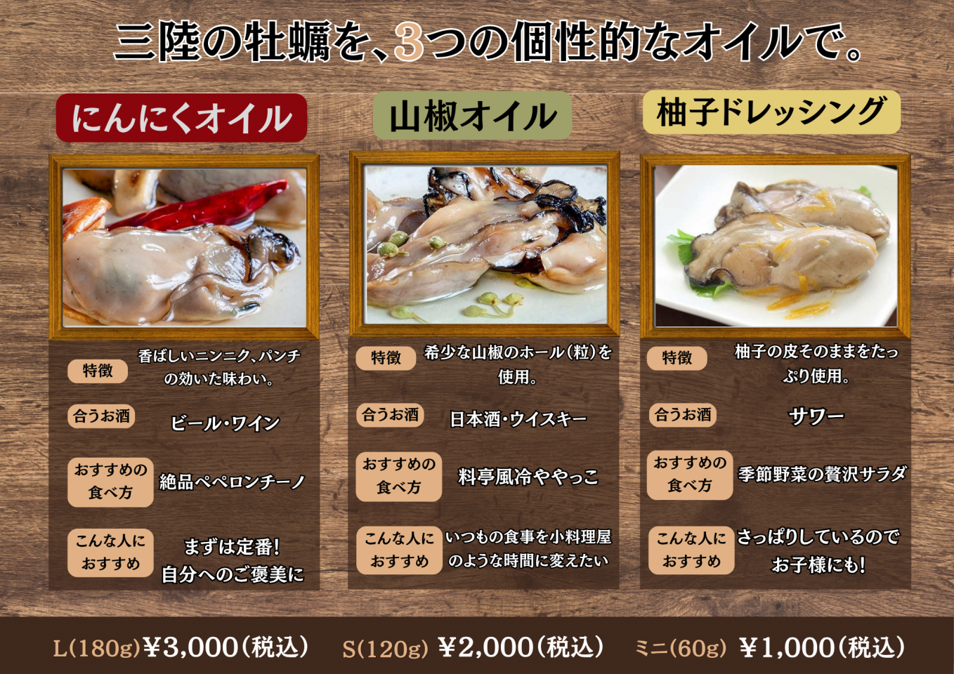 ★三陸産牡蛎の燻製オイル漬け3種