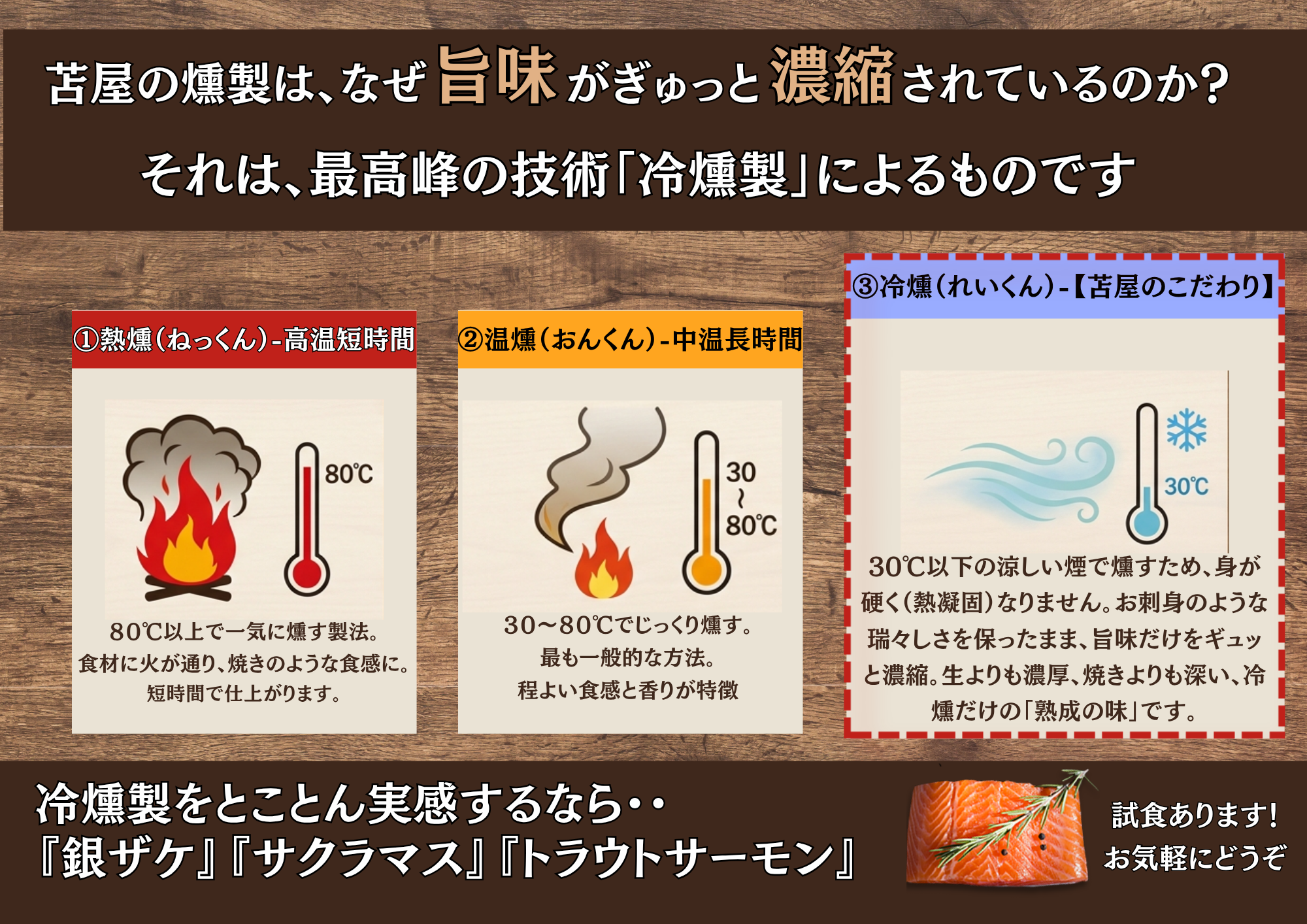 [苫屋の燻製の特長]